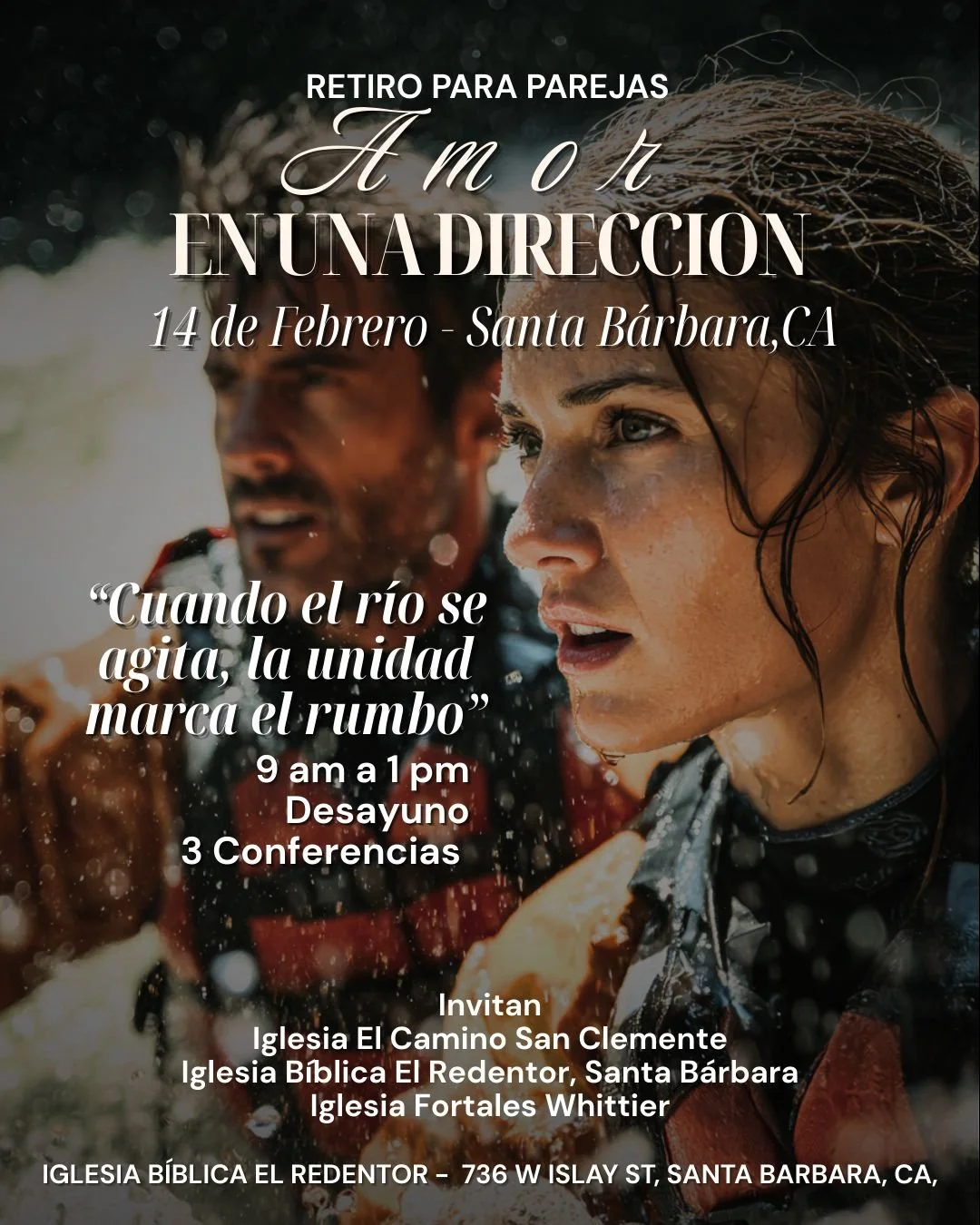 En el matrimonio siempre hay tiempos turbulentos, pero es importante ir en una misma dirección en cada etapa. Durante este evento recibiremos 3 conferencias y un buen tiempo de compañerismo. Tendremos tiempo de disfrutar la hermosa ciudad de Santa Barbara.